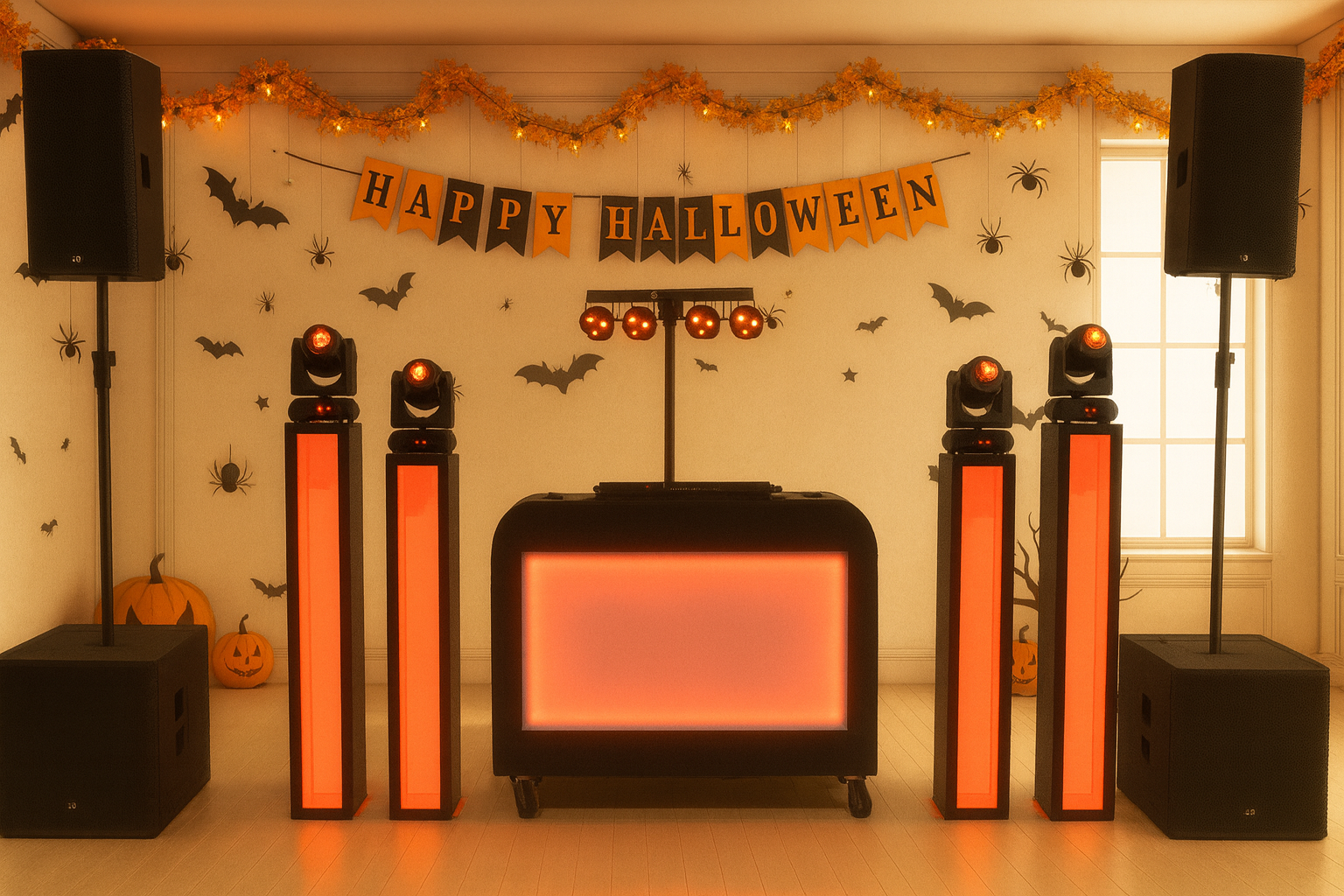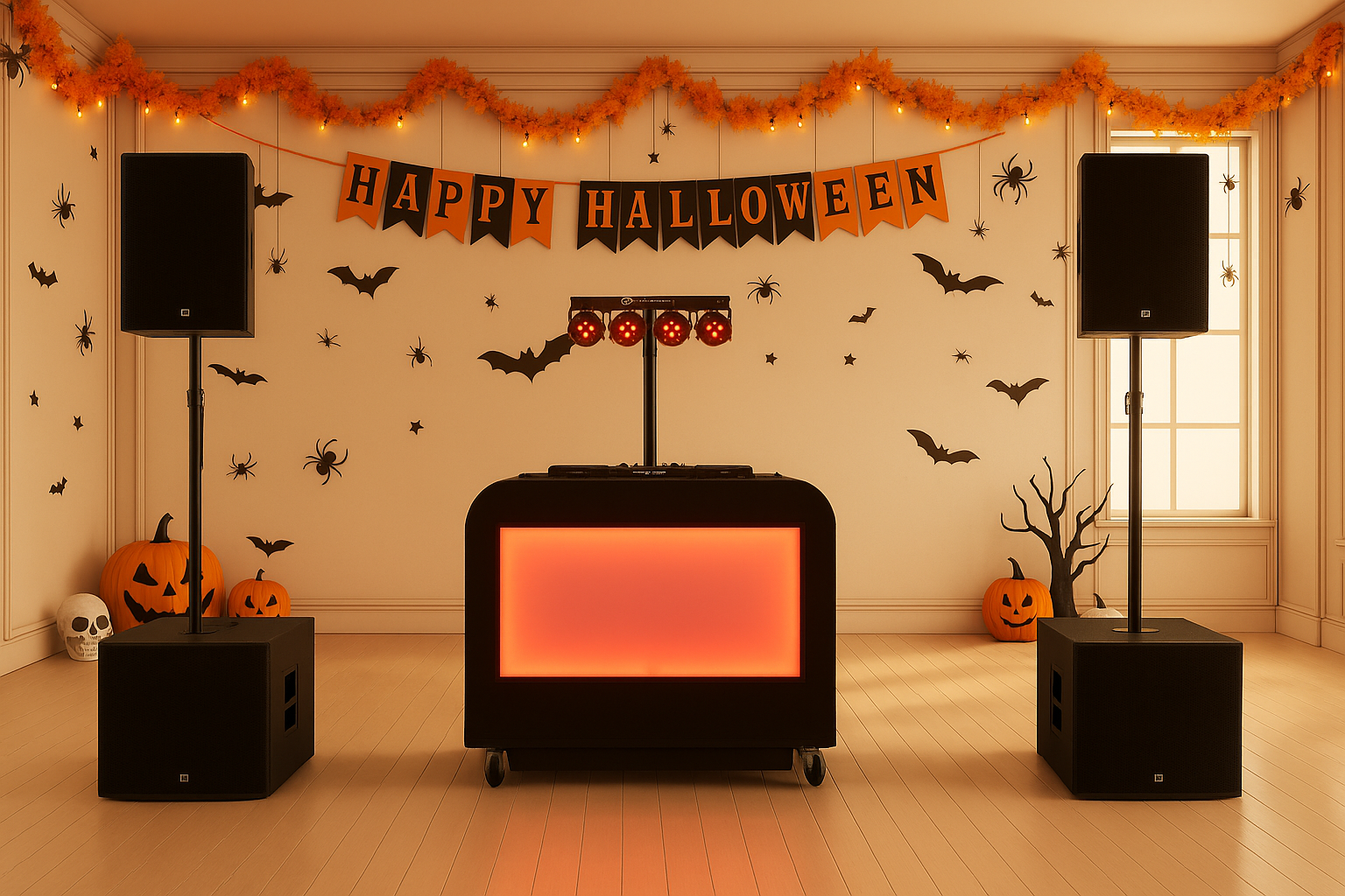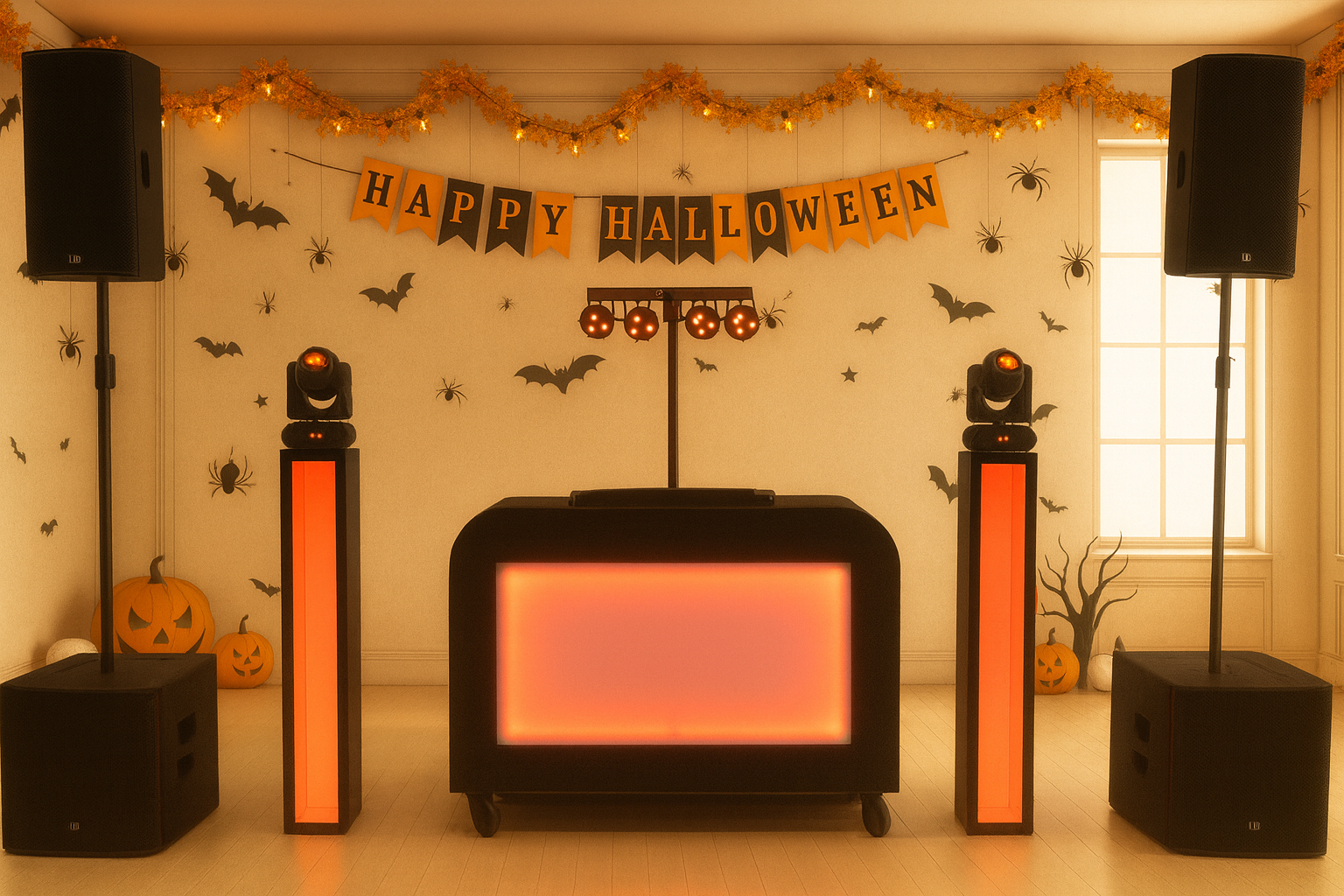 Of het nu gaat om een Halloweenfeest op kantoor, in een loods of op een externe locatie: wij leveren alles wat je nodig hebt. Denk aan professionele geluidsinstallaties, sfeervolle en mysterieuze verlichting, DJ-apparatuur, microfoons en meer. Alles wordt afgestemd op de locatie, het aantal gasten en het Halloween-thema.
