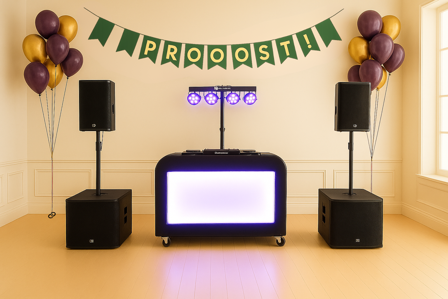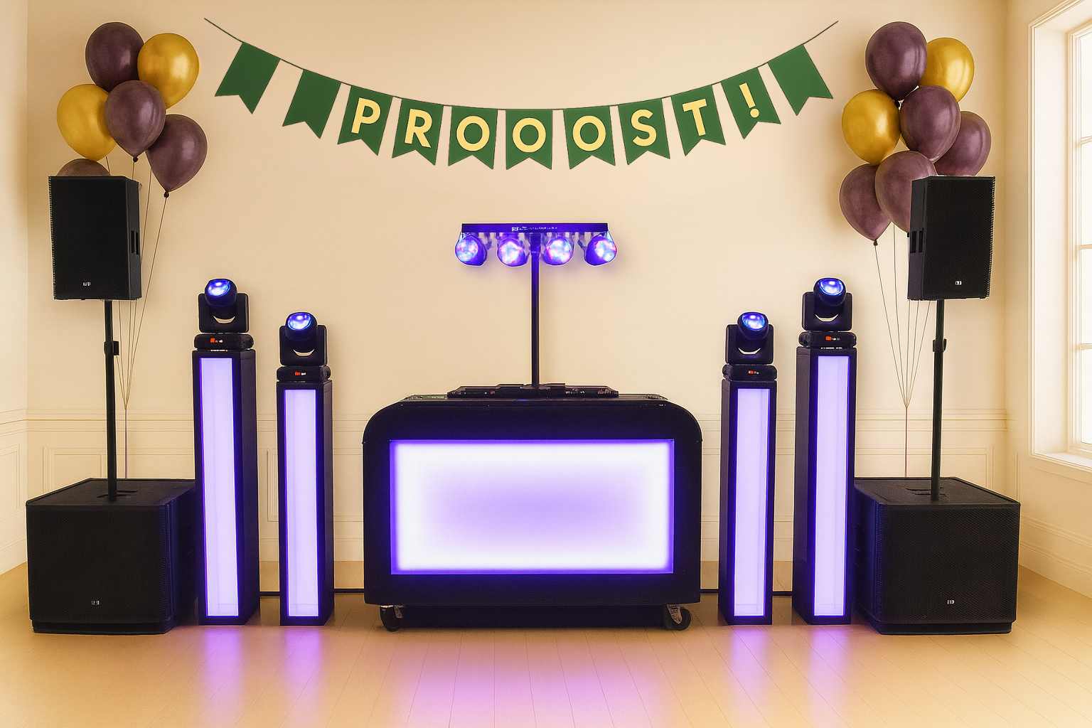 Afhankelijk van het aantal gasten en de locatie kijken wij welke DJ-show het best bij jullie jubileumfeest past. We bieden diverse stijlen en formaten, van compacte opstellingen tot uitgebreide shows met licht en effect. Zo is er voor ieder feest een perfecte match. Wij adviseren graag, maar jullie bepalen uiteindelijk zelf welke show het wordt.